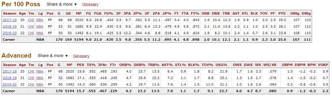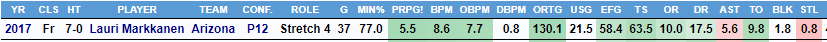 Markkanen’s low steal and block rates and poor passing numbers are a carryover from his time in college at University of Arizona (see above). This similarity to his college stats is important because it gives additional credence to the idea that this is part of who Lauri is as a player and not just the result of a crummy situation in Chicago, spending the majority of his career being coached by Jim Boylen, the worst head coach in the league the last two seasons in the estimation of this writer. That’s not to say that Markkanen couldn’t have looked better in a better situation or improved more under better coaching, but it is to say that he is probably deficient when it comes to event generation on defense and court vision on offense in a way that seems fairly unlikely to change.