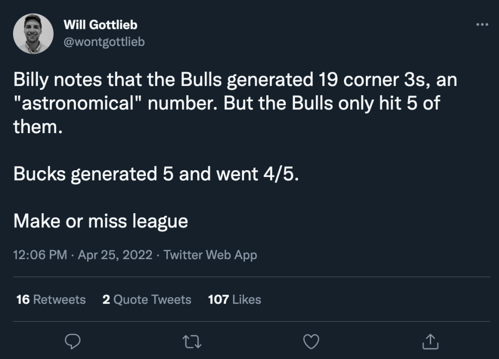 In a cruel inversion of Stacey King’s famous call, often made on Derrick Rose’s behalf, “too big, too strong, too good,” Chicago’s role players outside their top 6 players (DeMar DeRozan, Zach LaVine, Nik Vučević, Lonzo Ball, Alex Caruso, and Pat Williams) were simply “too small, too weak, too poor.” They didn’t have an adequate combination of size, strength, and skill to hold up over an 82 game season, nor could they go toe-to-toe with Milwaukee’s role players in the postseason.